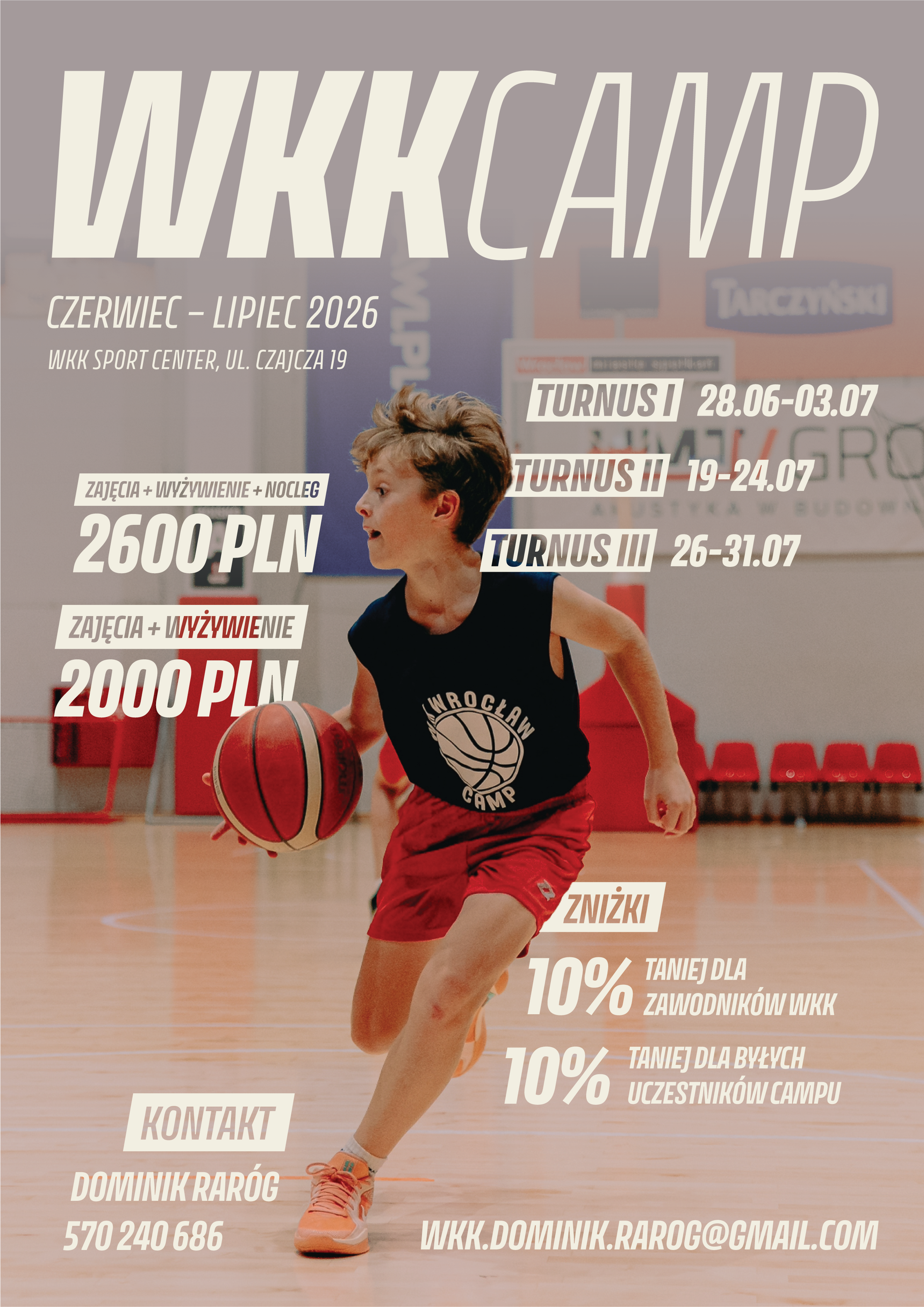 Jak w każde wakacje, jak co roku – zapraszamy Was na letnie treningi koszykówki. WKK Camp tym razem odbędzie się w trzech turnusach – od 28 czerwca do 3 lipca, od 19 do 24 lipca oraz od 26 do 31 lipca.